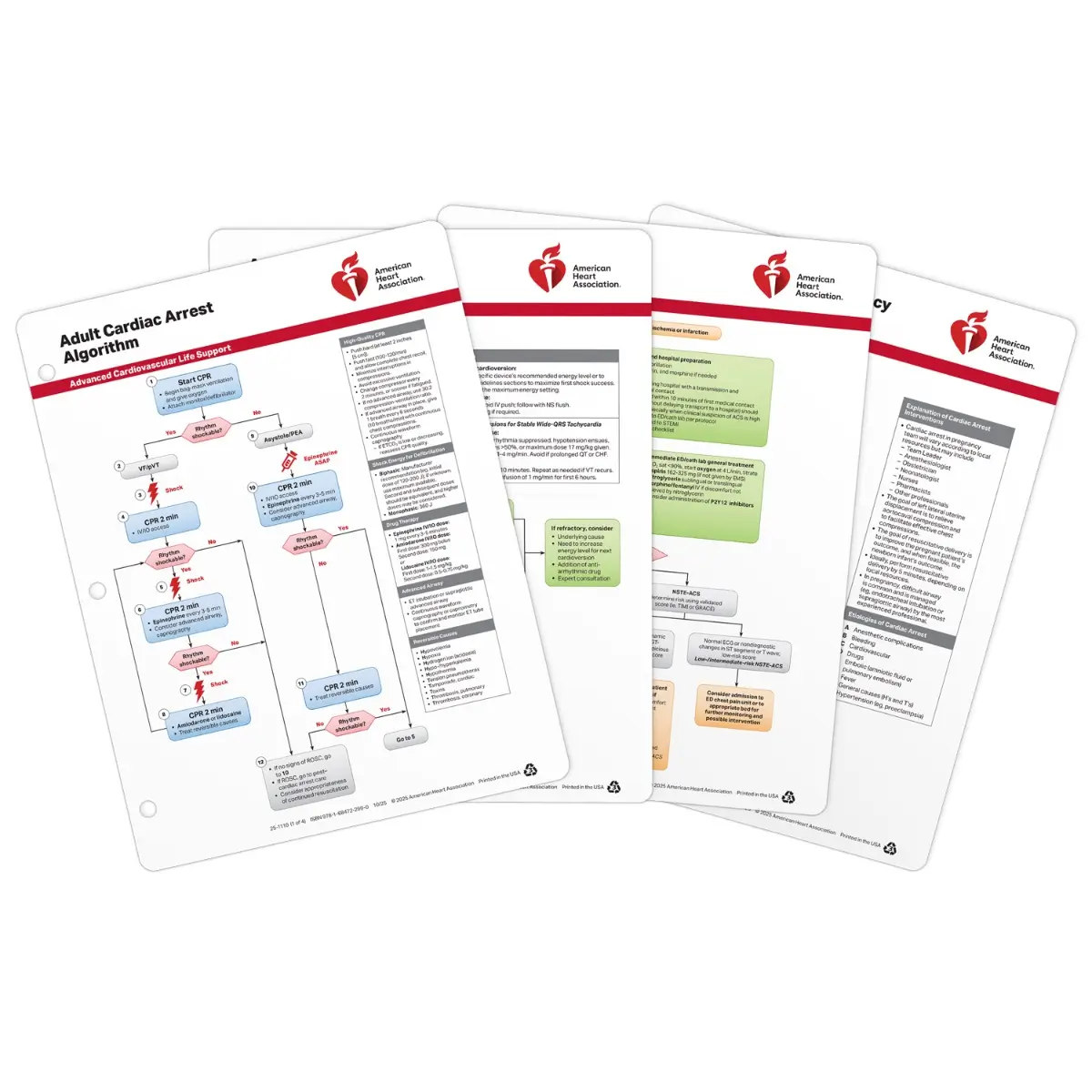 The AHA’s ACLS Emergency Crash Cart Cards (Set of 4) have been updated to reflect new science in the 2025 AHA Guidelines for CPR and ECC and replace the previous version (20-1110).