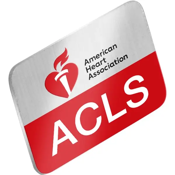 This attractive pin recognizes ACLS providers and can be used as a giveaway at trade shows, conferences, and other events to promote American Heart Association training.