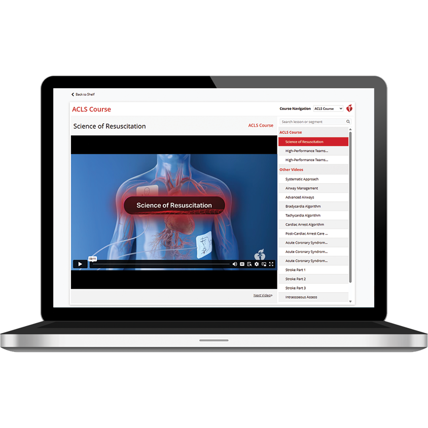 The Advanced Cardiovascular Life Support (ACLS) Provider Course Videos: Digital & Streaming include the required video segments for the Instructor-led and blended-learning options of the ACLS Course and the Instructor-led update course. The digital format allows Instructors to stream from a browser with an Internet connection, or download video for offline viewing with the AHA eBooks Reader App (Windows or Mac) or Mobile App (iOS or Android). Once downloaded, Instructors can play the digital course videos offline. The ACLS Provider Course Videos: Digital & Streaming are to be used by ACLS Instructors to teach the ACLS Provider Course. These videos are intended for use by a single AHA Instructor conducting AHA courses.