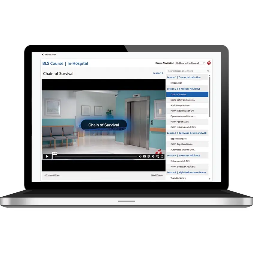 BLS Instructors can choose one of two tracks, in-hospital or out-of-hospital health care professionals, based on their specific student audience. Instructors can select the version of the course they are teaching from a drop-down menu. The BLS Provider Course Videos: Digital & Streaming are intended for use by a single BLS Instructor conducting BLS courses.